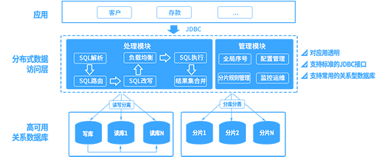 分布式数据库访问中间件用于分布式数据的访问,包括分库分表、读写分离、分布式事务等